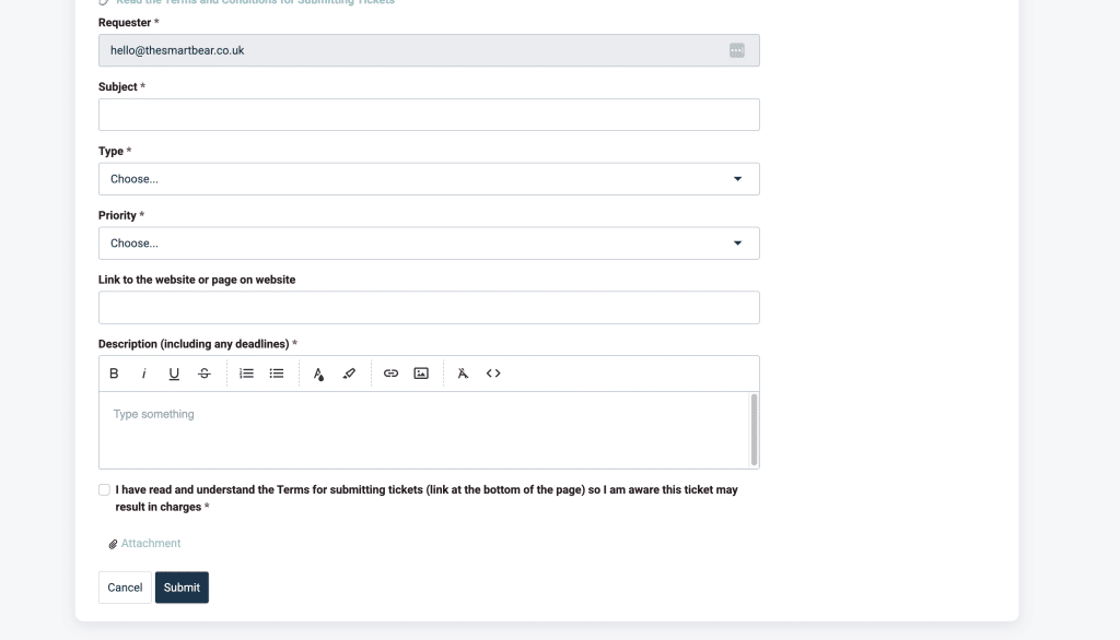 Before you raise a ticket, it’s useful if you can clear your browser cache, first, as that often solves many issues and will save us both time. It might also be worth searching the knowledge base in case we’ve provided an article on what to do to fix common issues.